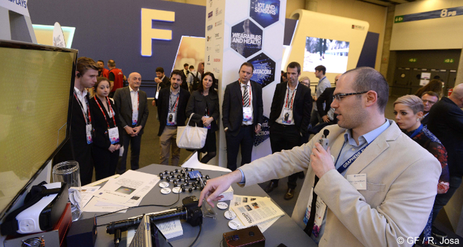 Cartamil-Bueno presents his graphene pixels prototype to an audience of technology experts at the Graphene Experience Zone at Mobile World Congress 2017