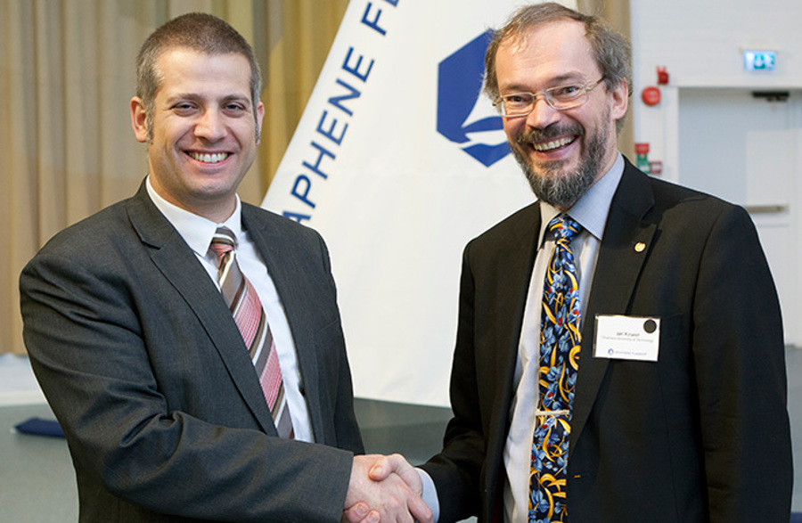 Carl-Christian Buhr, European Commission, Belgium and Prof. Jari Kinaret, Graphene Flagship/Chalmers University of Technology, Sweden at the Graphene Flagship programme start in October 2013. (Photo: Peter Widing, Chalmers University of Technology).