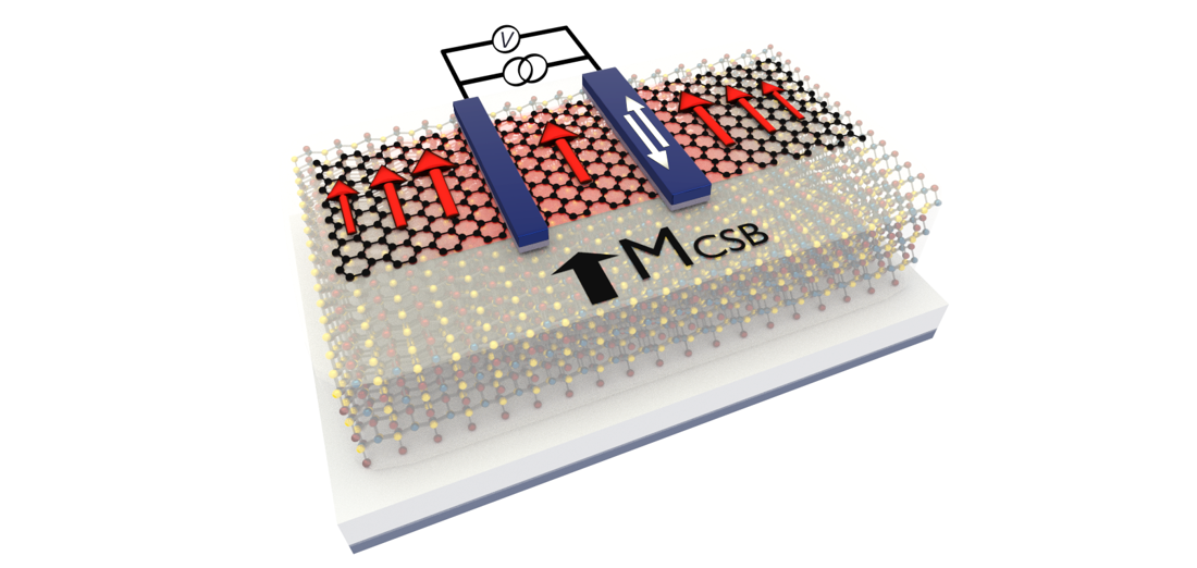 “We decided that the next step for our research was to put graphene onto a piece of a layered antiferromagnet, using a material called chromium bromium sulfide, or CrSBr,” explains van Wees. Simply by ‘sticking’ graphene, in the literal sense, on top of this antiferromagnetic material, the researchers introduced spin polarisation to graphene. For the first time, this was done without needing to pass the current through an external ferromagnet.